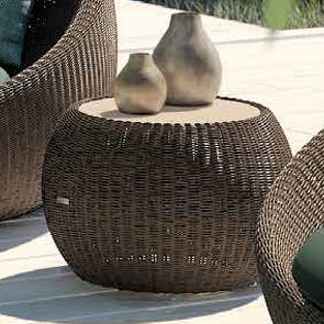 Обеденный стол Pacific, отделка искусственный ротанг кофейного цвета, стекло