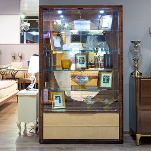 Витрина Bellagio, отделка шпон ореха coffee, розовое золото