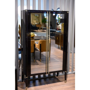 Витрина Lloyd, отделка черный глянцевый ясень, цвет металла латунь, бронзированное стекло