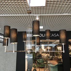 Люстра, отделка nickel, белые и черные абажуры
