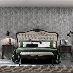 Кровать с решеткой, отделка матовый бежевый лак, ткань Tiffany-01