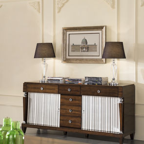 Комод, отделка шпон вишни C, сусальное серебро, покрытое лаком шампань