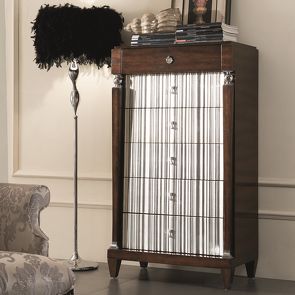 Комод высокий, отделка шпон вишни C, сусальное серебро, покрытое лаком шампань