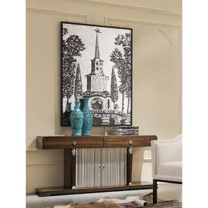 Консоль, отделка шпон вишни C, сусальное серебро, покрытое лаком шампань