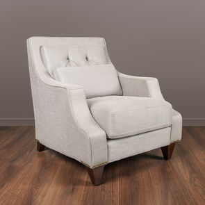 Кресло, отделка шпон махагона C, ткань серо-голубая рогожка
