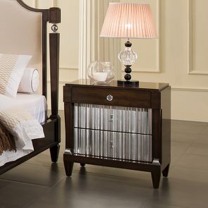 Прикроватная тумбочка, отделка шпон вишни C, сусальное серебро, покрытое лаком шампань