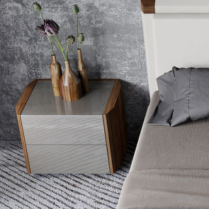 Прикроватная тумбочка, отделка шпон ореха F, серый глянцевый лак 8C