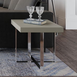 Приставной столик, отделка глянцевый серо-бежевый лак, полированная сталь