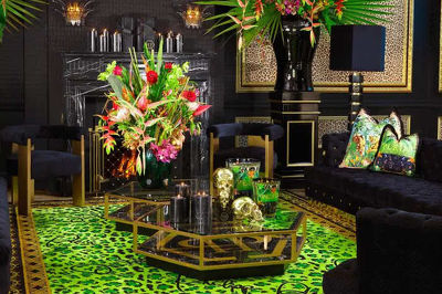 Подушка Jungle из чистого шелка, с принтом диких животных джунглей и пышном дизайном фауны, с окантовкой в виде золотой цепи и подписью Plein. Состав ткани 100% шелк.