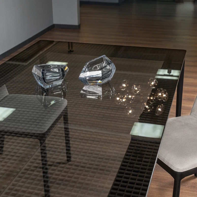 Обеденный стол Easy, отделка nero, дымчатое стекло