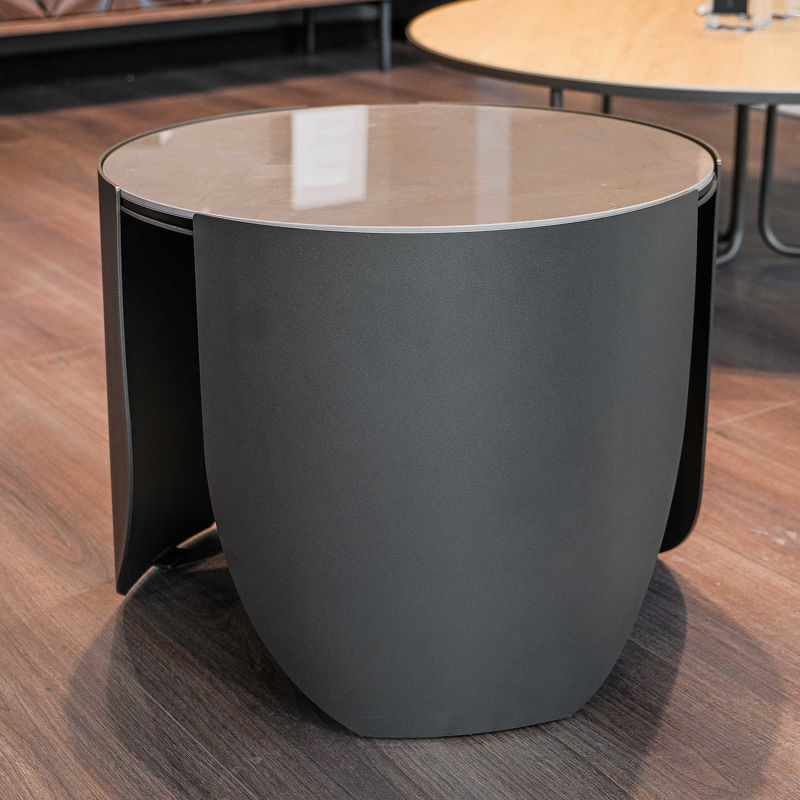 Приставной столик выполнен в современном стиле.