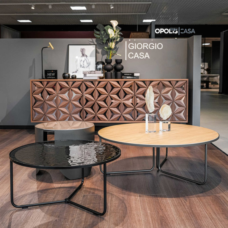 Журнальный столик выполнен в современном стиле.