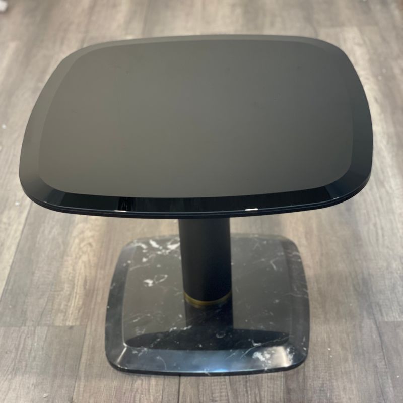 Приставной столик Botero, отделка мрамор Glossy black Marquinia, серое стекло