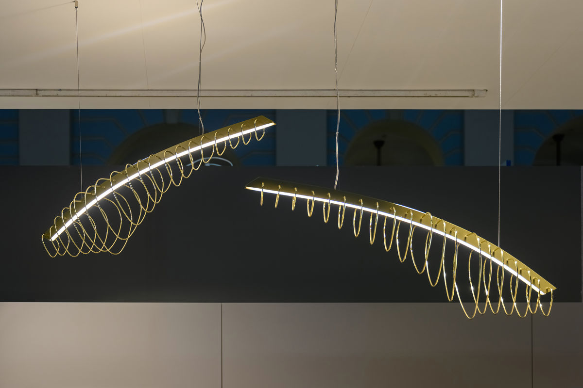 Люстра подвесная итальянской фабрики MM Lampadari изогнутой формы, напоминающей силуэт Кита. Люстра светодиодная, выполнена в современном стиле.