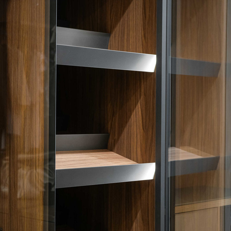 Гардероб, отделка серебрянное стекло, ручки Titanio Brunito, орех, матовый лак Nero Stout