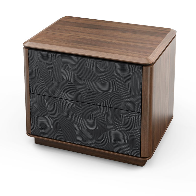 Прикроватная тумбочка, отделка шпон ореха F, темно-серый матовый лак, темно-серый узор