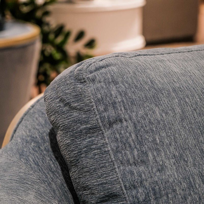 Выполнено из массива дерева. Обито тканью из ассортимента фабрики в синих тонах. Тип ткани - шенилл. Состав ткани - 100% полиэстер.