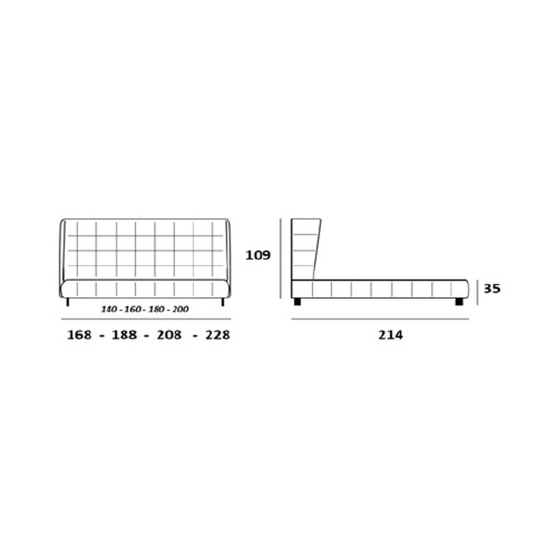 Основные материалы – МДФ, фанера, металл. Мягкие элементы изголовья выполнены из двухслойного наполнителя. Первый слой – эластичный пенополиуретан плотностью 30 кг/м3. Второй слой – чехол из высокообъемного материала «Холлотек» плотностью 200 г/м2. Элементы мягкости царги выполнены из эластичного пенополиуретана плотностью 25 и 22 кг/м3.