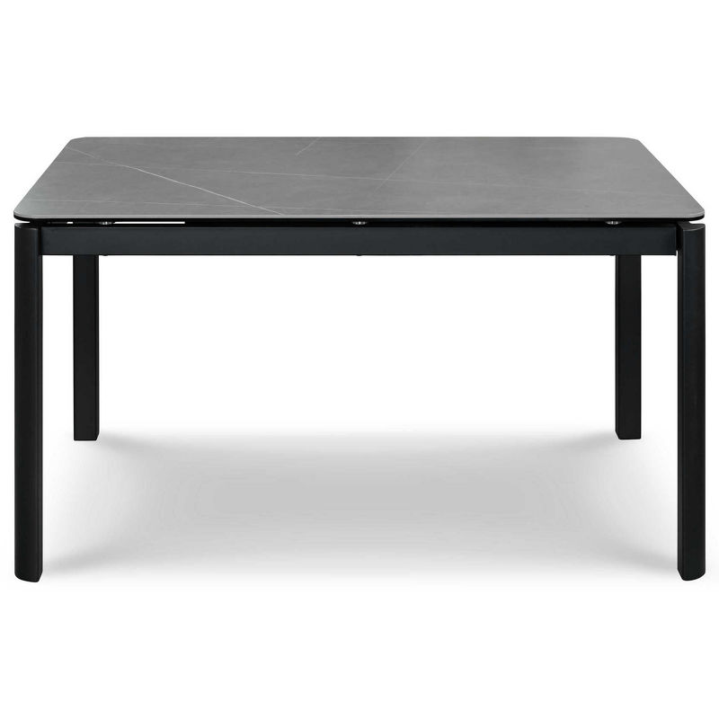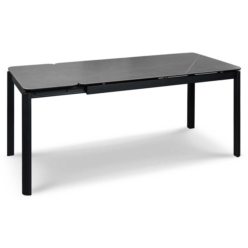 Обеденный стол раздвижной, отделка закаленное стекло с керамикой, черный металл