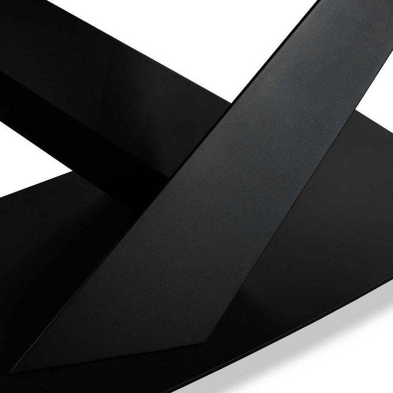 Обеденный стол раздвижной, отделка закаленное стекло с керамикой, черный металл