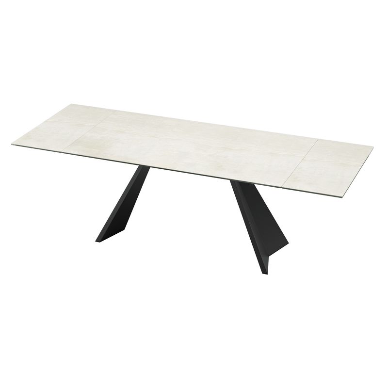 Обеденный стол раздвижной, отделка закаленное стекло с керамикой, черный металл