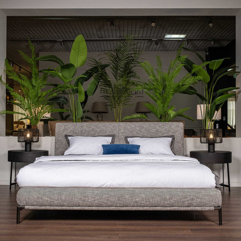 Двуспальная кровать от итальянского бренда Fratelli Barri. Каркас кровати изготовлен из натурального массива дуба. Мягкое изголовье и основание кровати выполнены в высококачественной отделке тканью меланж. Ножки изготовлены из металла.