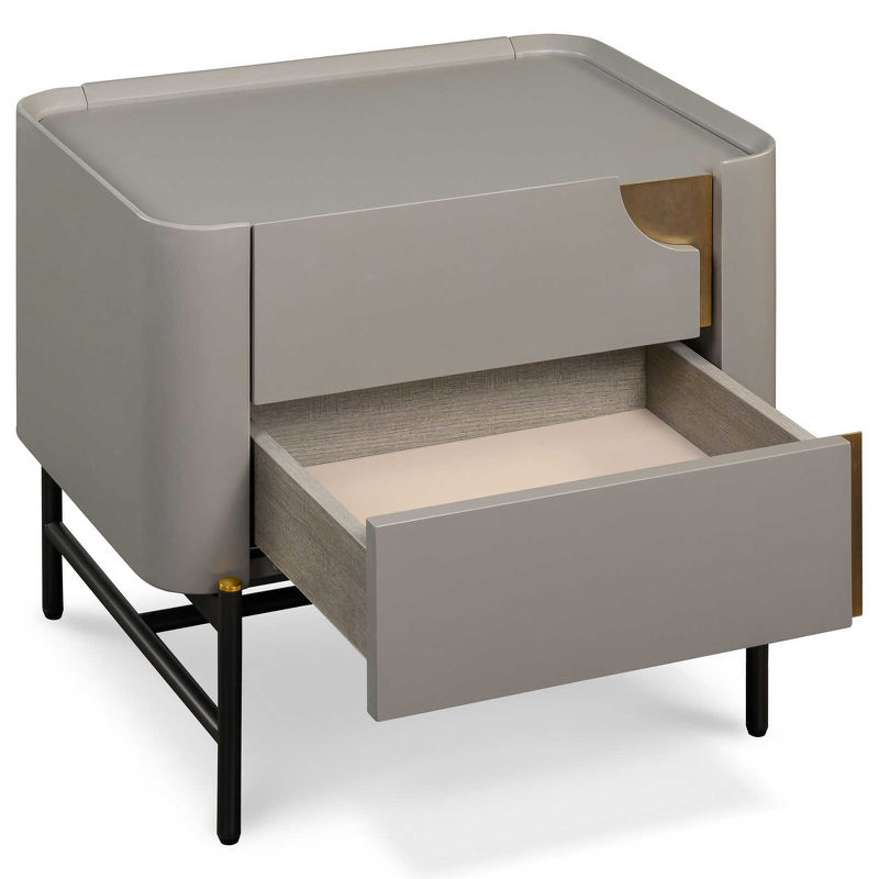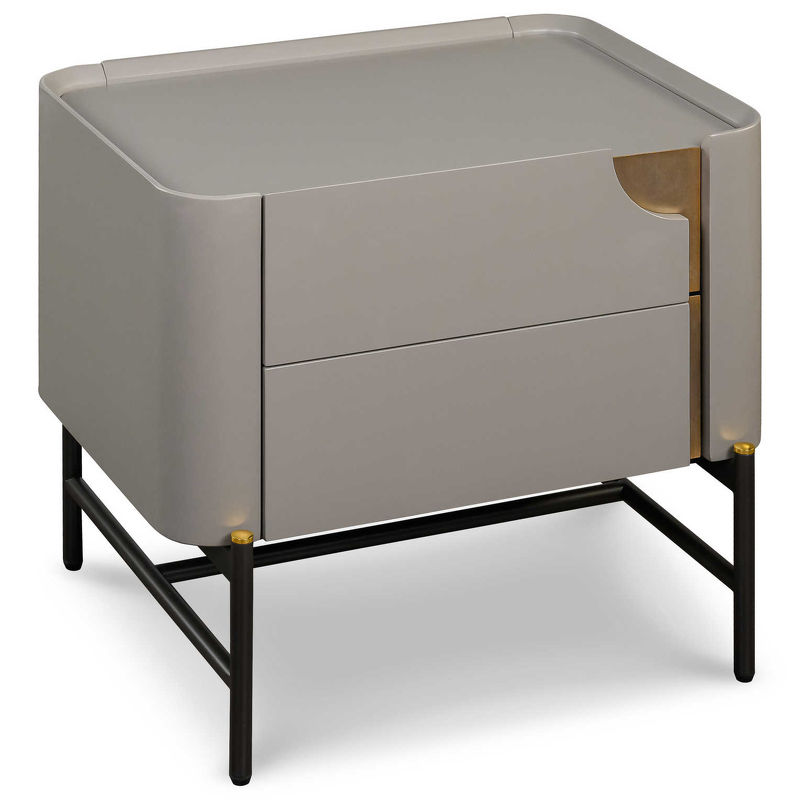 Прикроватная тумбочка, отделка серый матовый Morandi, латунь, серебристо-черный металл