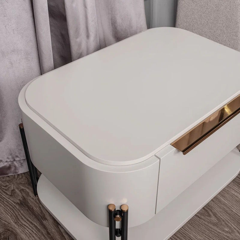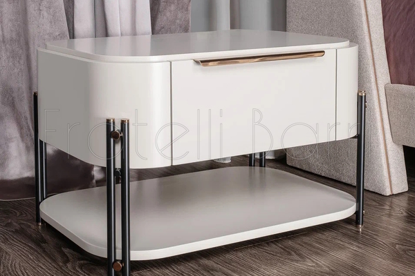Прикроватная тумбочка от фабрики Praddy выполнена в современном стиле. Тумбочка оснащена одним выдвижным ящиком и открытой полкой.