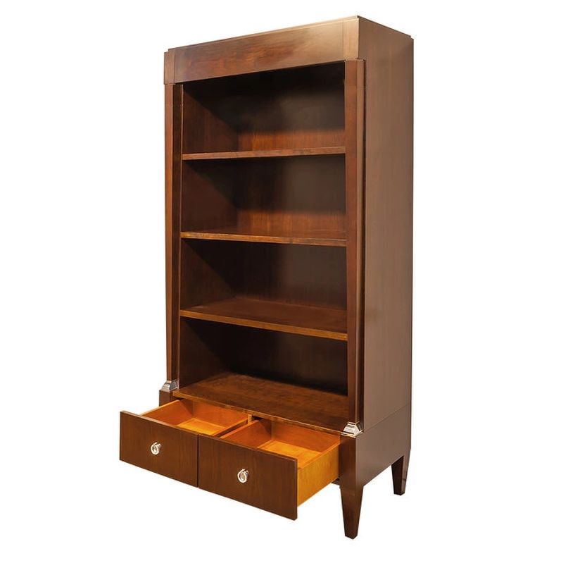 Стеллаж выполнен в стиле Неоклассика. Отделка шпон вишни cherry С. В нижней части 2 выдвижных ящика. Сделан из массива дерева и высококачественного МДФ высокой плотности.