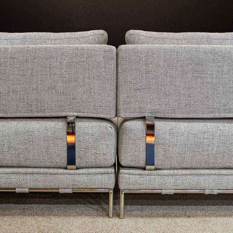Диван Vivienne, отделка ткань кат. 2, подушки ткань кат. 2, глянцевый ясень Mocha, цвет металла дымчатый хром