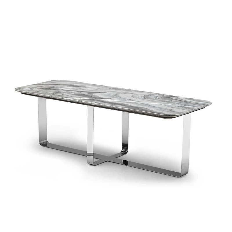 Журнальный столик Hamptons, отделка мрамор Ash gray, цвет металла полированная сталь
