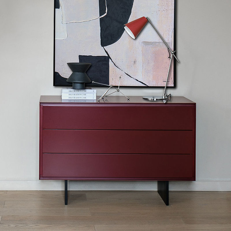 У комода три выдвижных ящика со скрытыми направляющими и механизмом открывания push to open (открывание нажатием).