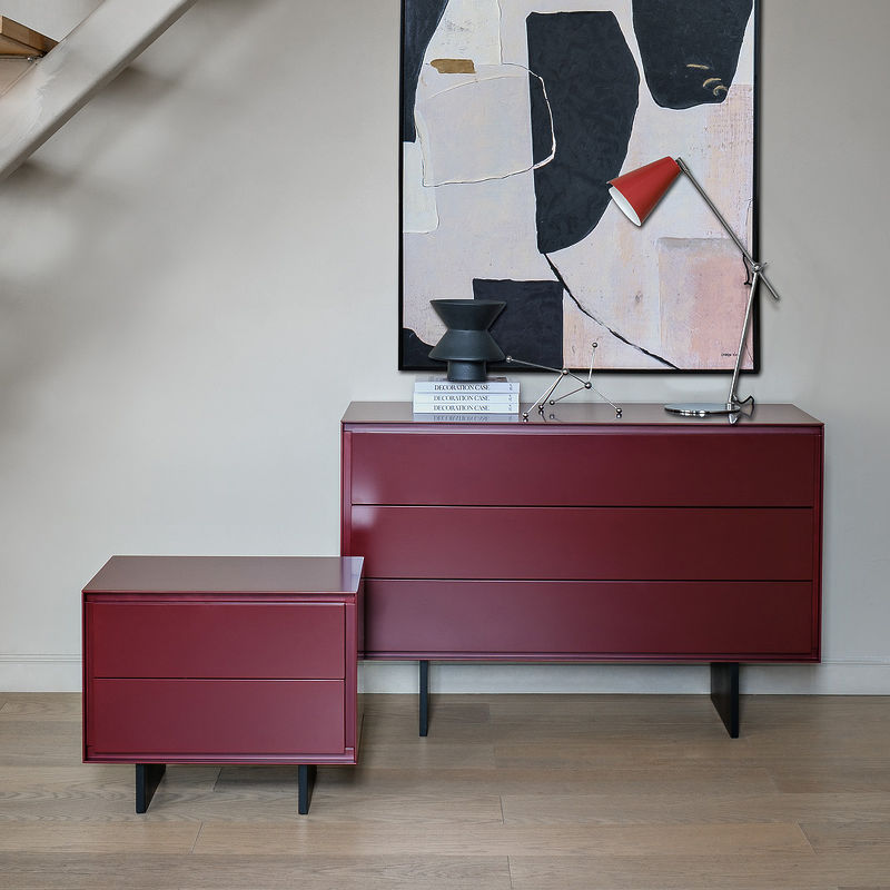 Тумбочка с двумя выдвижными ящиками со скрытыми направляющими и системой открывания Push to open (открывание нажатием).
