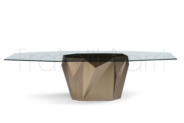 Дизайнерский обеденный стол от бренда Fratelli Barri привлекает внимание интересной формой столешницы - плавный шестигранник. Многогранное основание стола как камень выброшенный мощными волнами океана на берег. Такой стол абсолютно точно станет украшением вашей столовой зоны, добавив в интерьер стиля и изысканности.