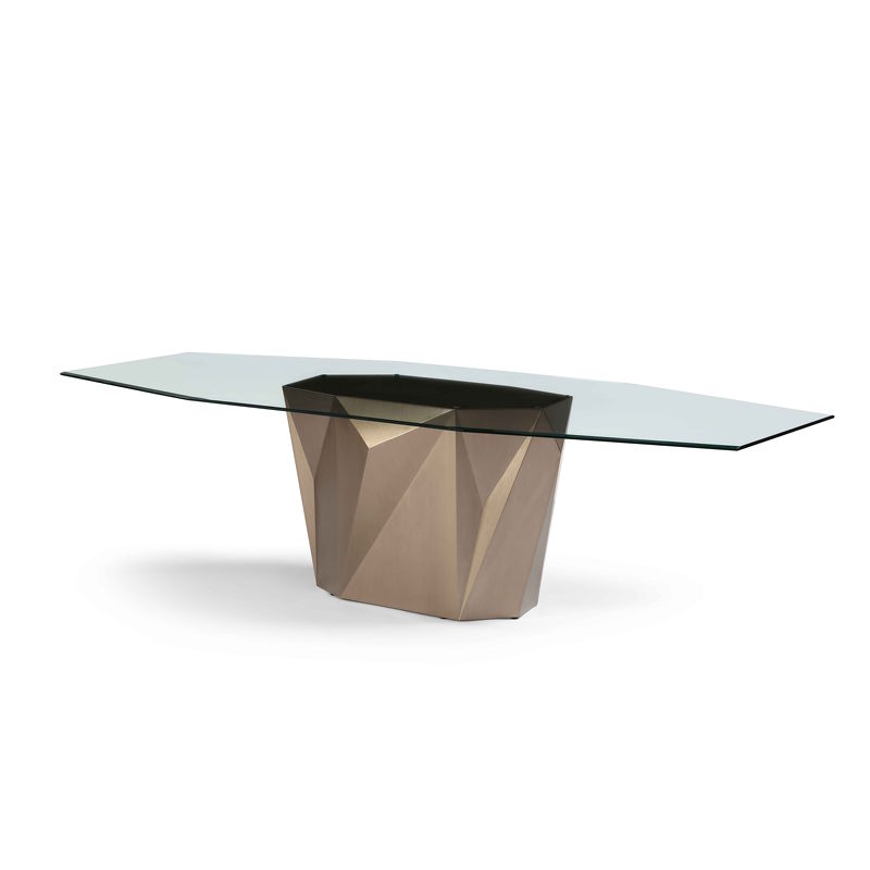 Обеденный стол, отделка прозрачное стекло, матовый лак в цвете латунь