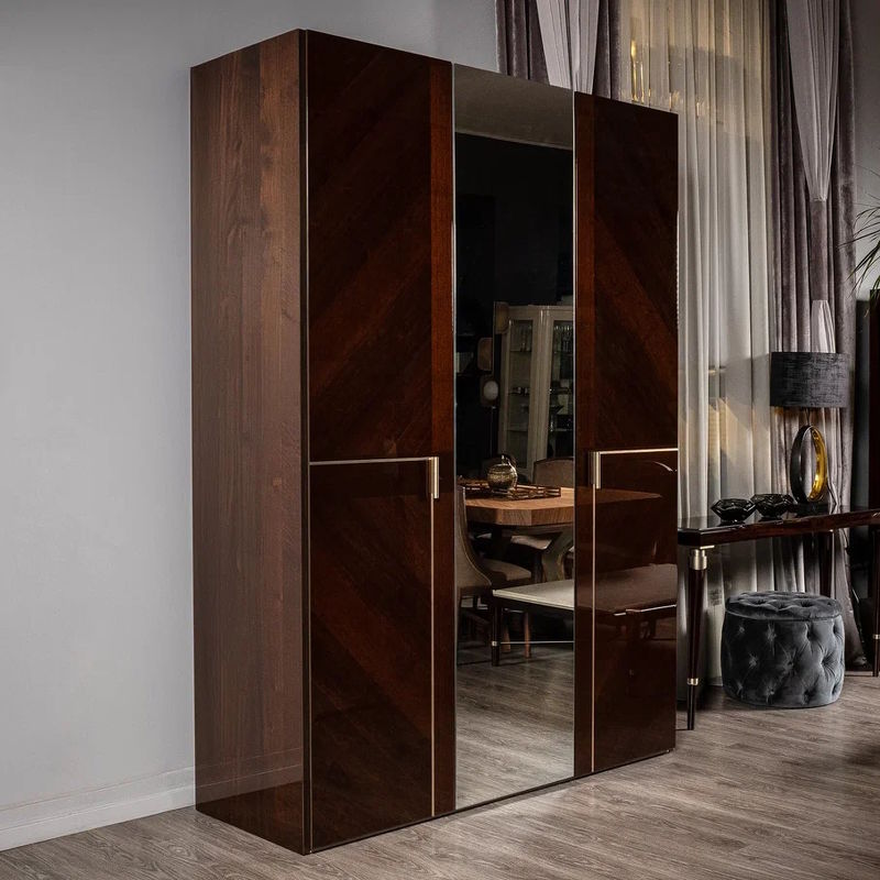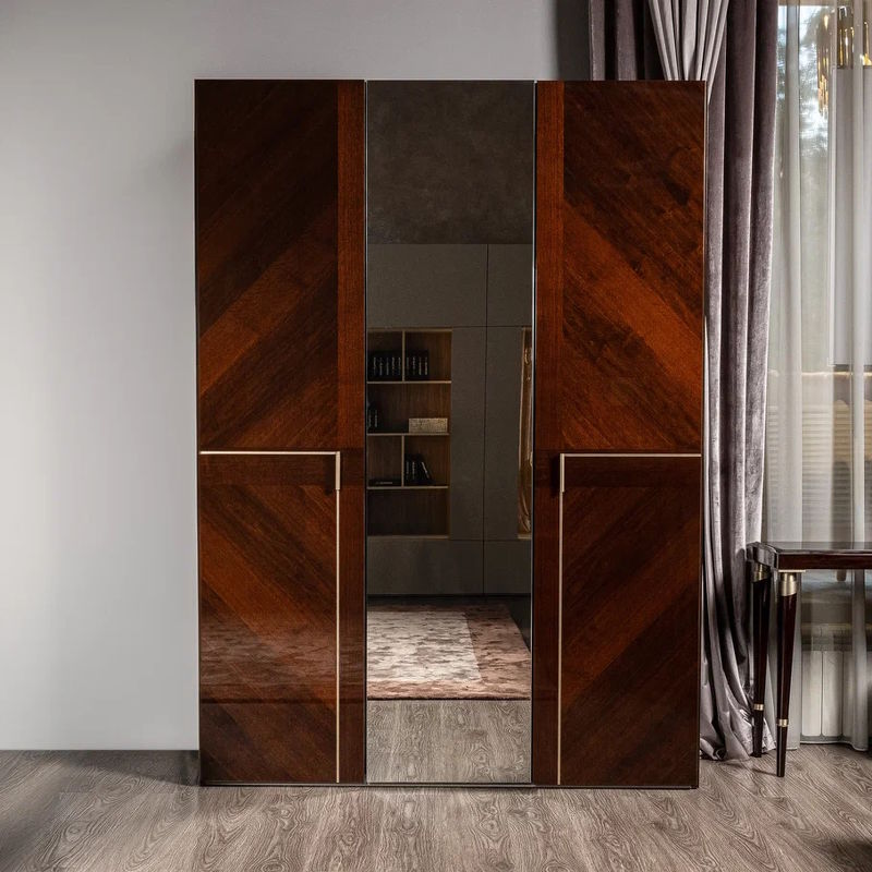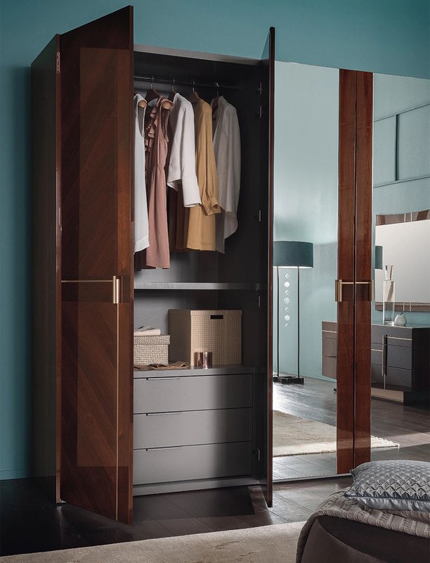 Гардероб Bellagio с ящиком, отделка шпон ореха coffee, розовое золото, зеркало, arena