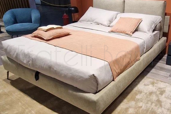 Кровать от итальянской фабрики Novaluna, в отделке тканью на металлических ножках.