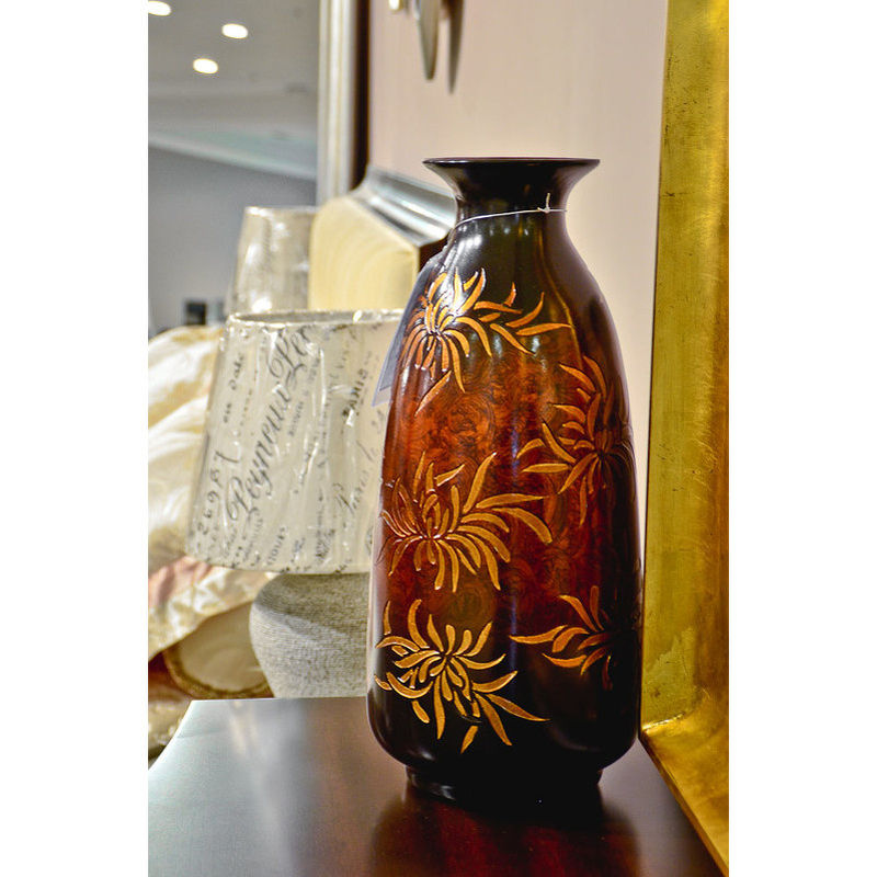 Ваза с зауженным горлышком выполнена в стиле Ар деко. Украшена цветочным узором. Аксессуар отлично впишется в интерьеры разных стилей, благадаря свой форме и выдержанными тонами.