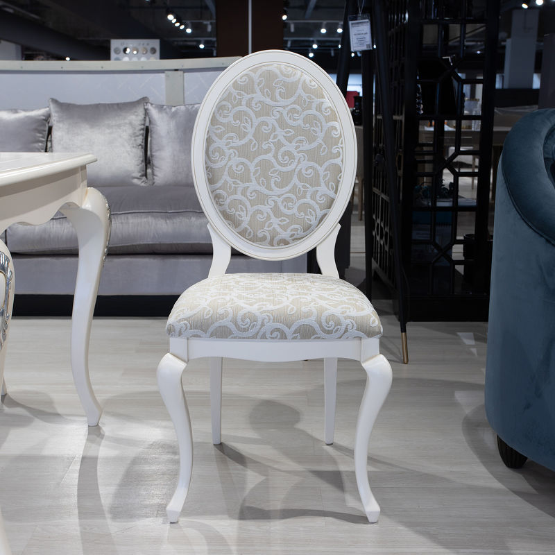 Стул с медальонной спинкой выполнен в классическом стиле. Опирается на ножки кабриоли, задние ножки слегка наклонены.