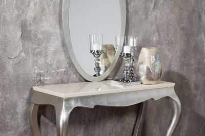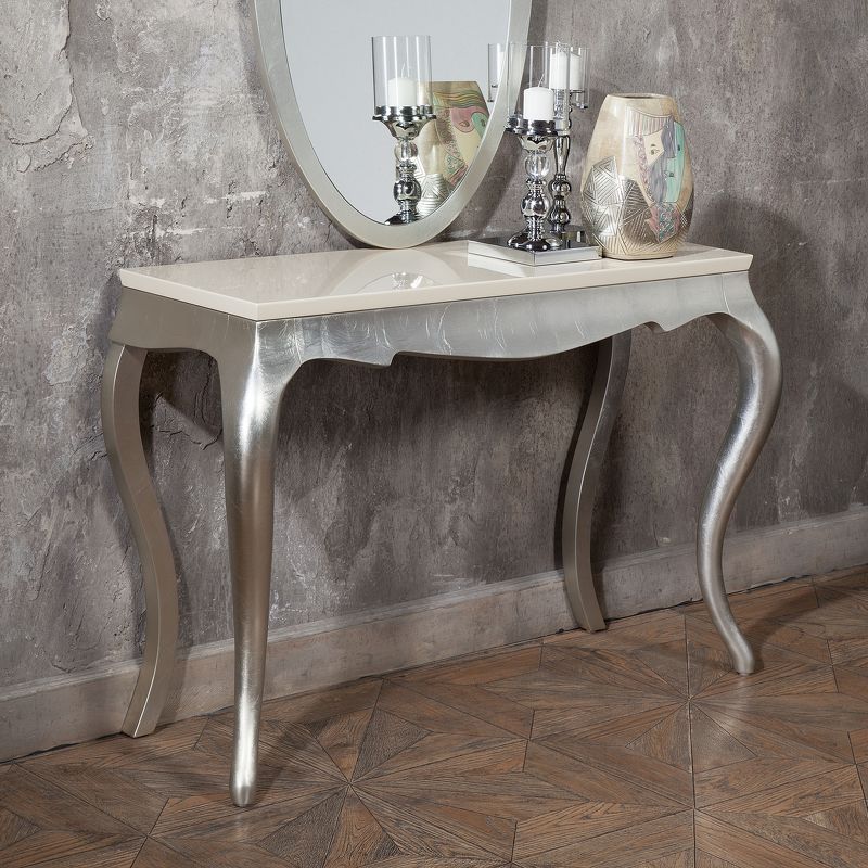 Консоль, отделка перламутровый кремовый лак, сусальное серебро, покрытое лаком шампань