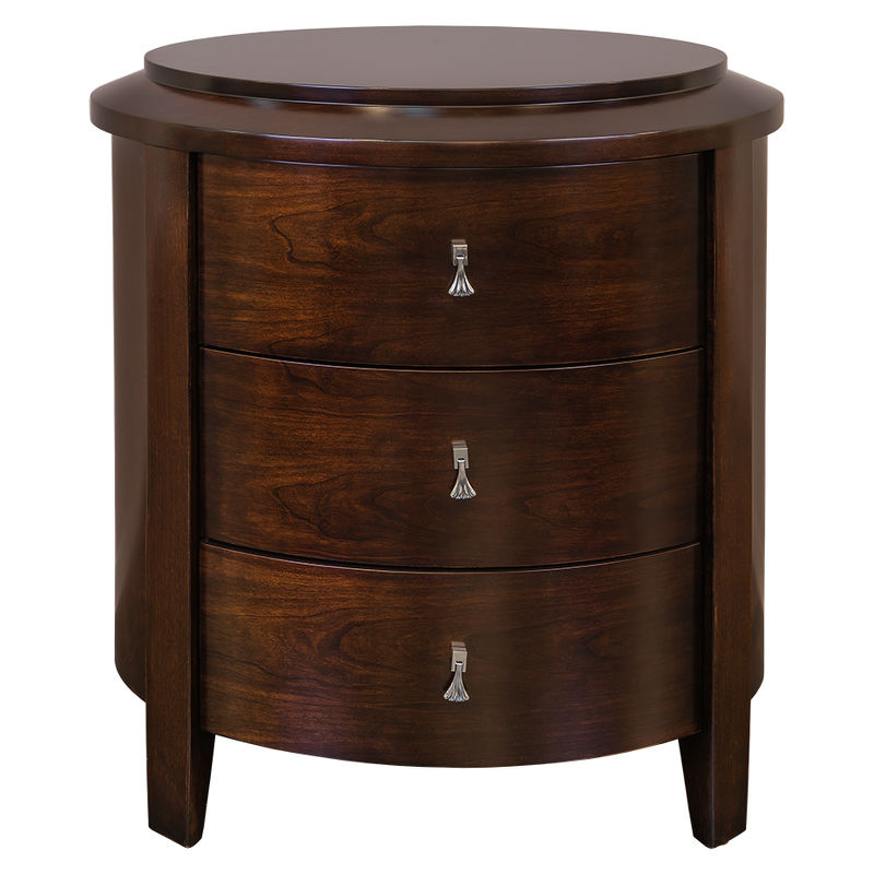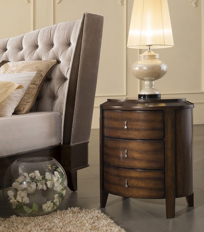 Высокая прикроватная тумбочка круглой формы с 3 ящиками в стиле неоклассика от итальянского бренда Fratelli Barri. Вместительный вариант для европейской спальни.