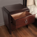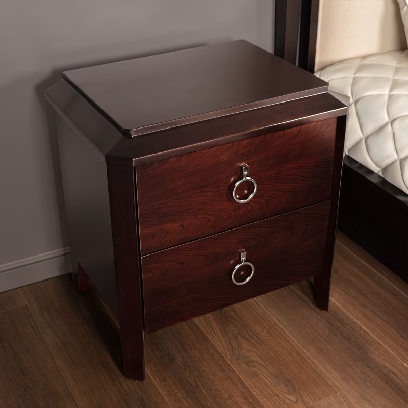 Каркас — массив дерева и высококачественная МДФ высокой плотности, отделка — натуральный шпон вишни. Все выдвижные ящики снабжены скрытыми направляющими. Ящики оснащены доводчиками для плавного закрывания. Корпус ящиков в более светлой отделке дерева. Цвет фурнитуры - хром.
