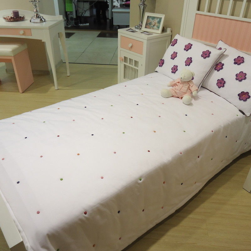 BUTTON Детский комплект покрывало, валик, подушка белого цвета