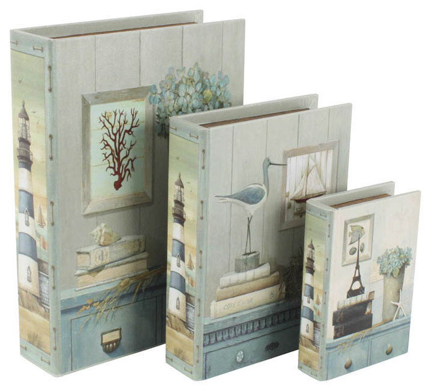 В комплекте три книги-шкатулки. Размеры книг: маленькая 16*3.5 см, средняя 23*5 см, большая 6.5*30 см.