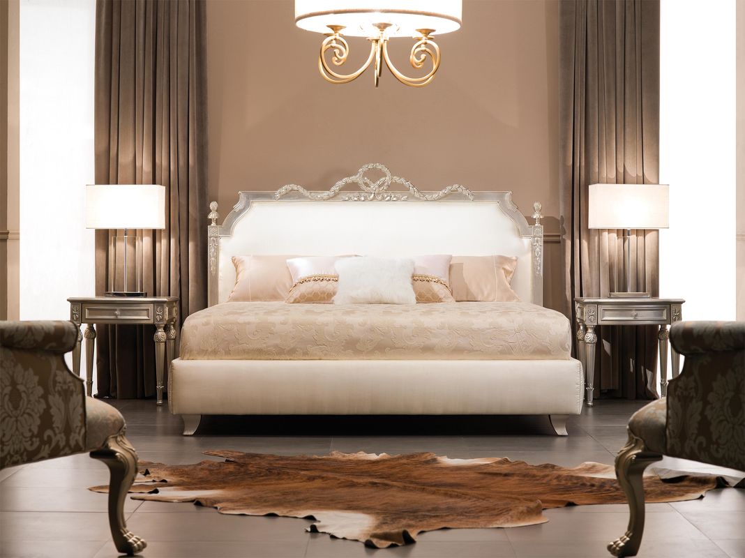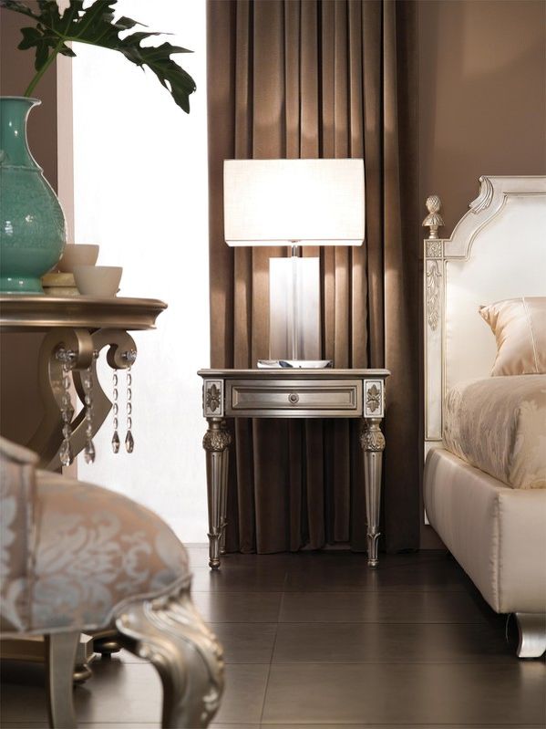 Прикроватная тумбочка на высоких резных ножках выполнена в классическом стиле. Отделка сусальное серебро, покрытое лаком шампань. Оснащена 1 выдвижным ящиком.
