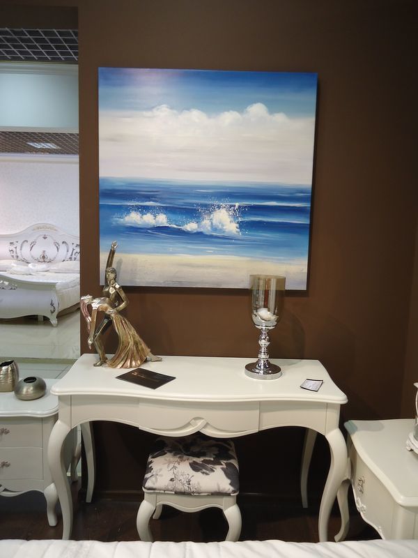 Тонкое исполнение и уникальная техника нанесения детальных штрихов подчеркивают особую утонченность и символичность картины. Синее море уходит далеко вдаль и сливается с голубым небом