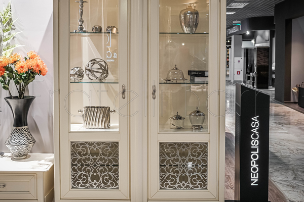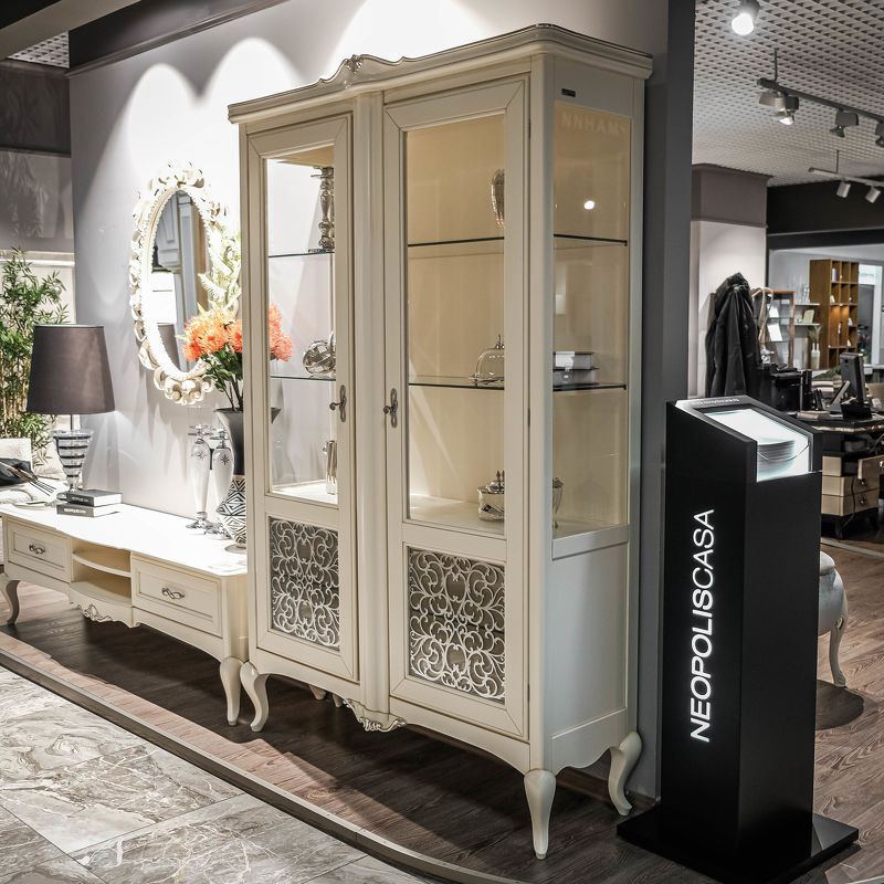 Витрина, отделка белый блестящий лак
