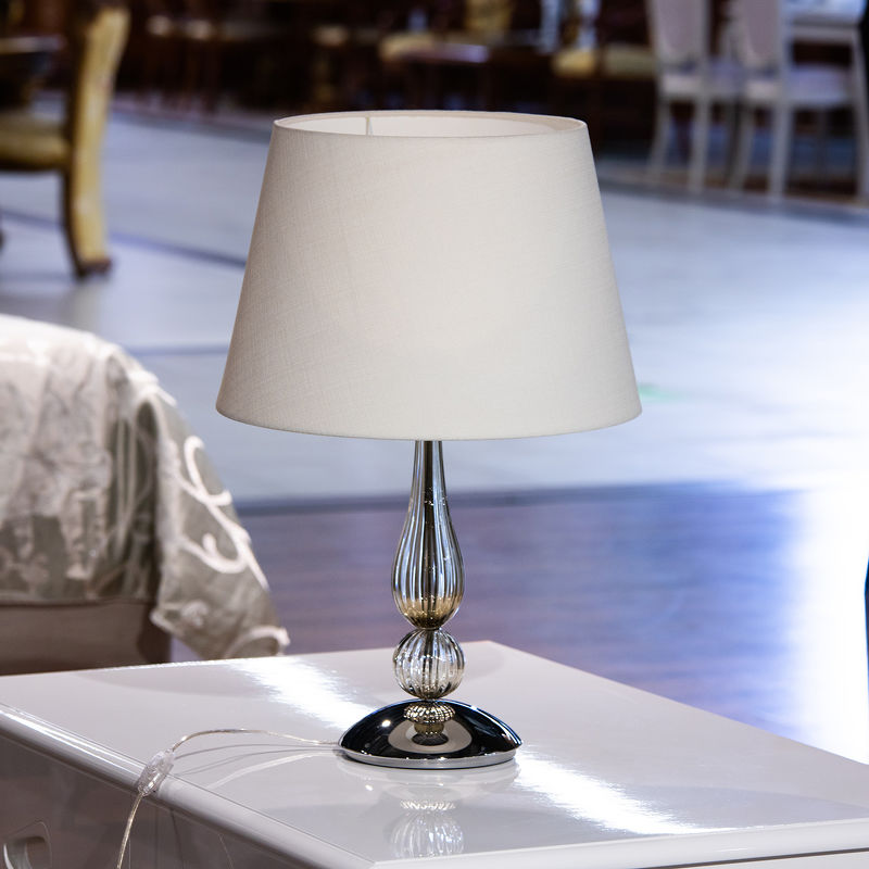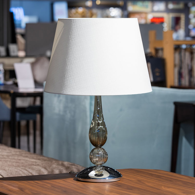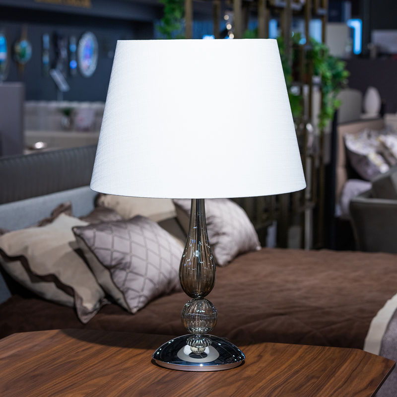 Настольная лампа СНЯТО С ПРОИЗВОДСТВА, отделка хром, дымчатое стекло, белый абажур