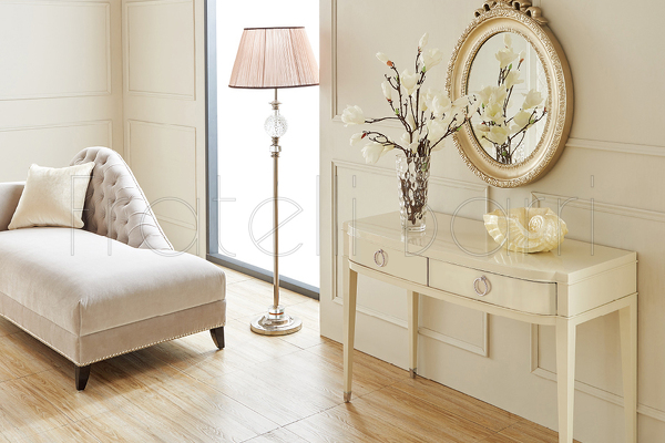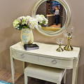 Изящный туалетный столик Modena от итальянского бренда Fratelli Barri. Столик в неоклассическом стиле, с двумя выдвижными ящиками. Закругленные фасады. Отделка - бежевый блестящий лак. На ножках металлические колпачки.