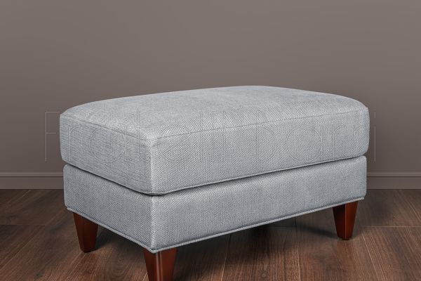 Пуф, отделка шпон махагона С, ткань серо-голубая рогожка